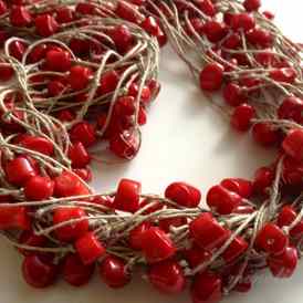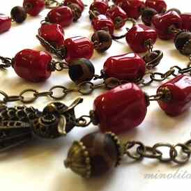 : авантюрина, агата, аметиста, аквамарина, граната, жемчуга, кабошонов, кварца, кораллов, тигрового глаза, яшмы и других. Еще есть стеклянные бусины и самая различная фурнитура — застежки, крючки, цепочки, шнурки, оправы и прочее.